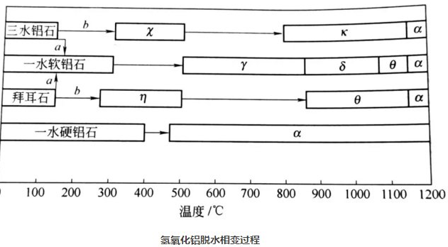 氫氧化鋁在脫水過程中伴隨著晶型轉變,一般到1200℃全部轉變成α—Al2O3。